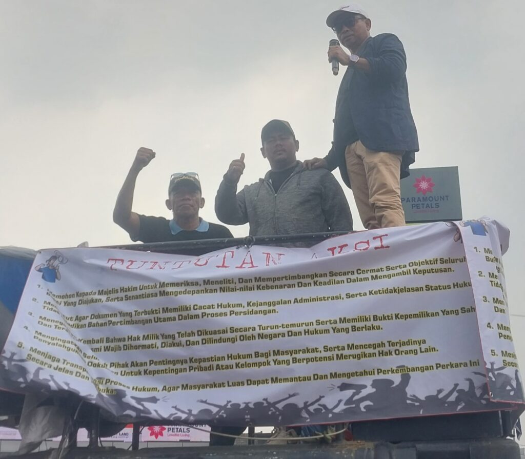 “Ini bukan sengketa biasa. Kalau SHM saja bisa dikalahkan oleh fotokopi, lalu hukum berpihak ke siapa?” tegas salah satu perwakilan warga dalam orasi.