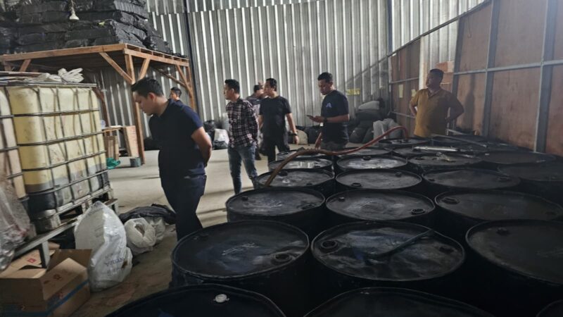 ”Diduga, mereka melakukan kegiatan tersebut dengan cara mengolah oli bekas kemudian diberi pewarna sesuai dengan merek yang diproduksi oleh gudang tersebut,” katanya.
