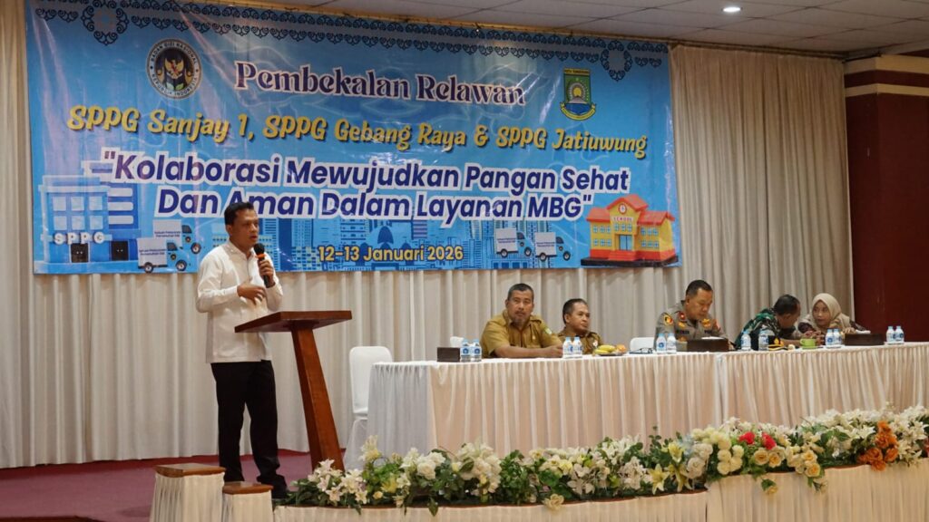 Tangerang,Klikberitatv.com- Pembekalan ratusan relawan program Makan Bergizi Gratis (MBG) bertemakan ‘Kolaborasi Mewujudkan Pangan Sehat dan Aman Dalam Pelayanan MBG’ di Remaja Kuring Resto Jl. Gatot Subroto KM 4,5, Jatiuwung, Sangiang Jaya, RT.001/RW.001, Sangiang Jaya, Kec. Periuk, Kota Tangerang, Banten. Senin,( 12/1/2026)