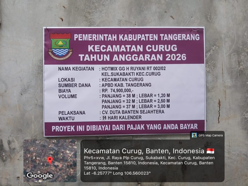 KLIKBERITATV.COM, Tangerang – Warga RT 002 RW 02 Kampung di Gang H.Ruyani , Kelurahan Sukabkti, Kecamatan Curug, Kabupaten Tangerang menyampaikan apresiasi atas pelaksanaan proyek pengaspalan (hotmix) yang dilaksanakan pada Kamis (05/03/2026).